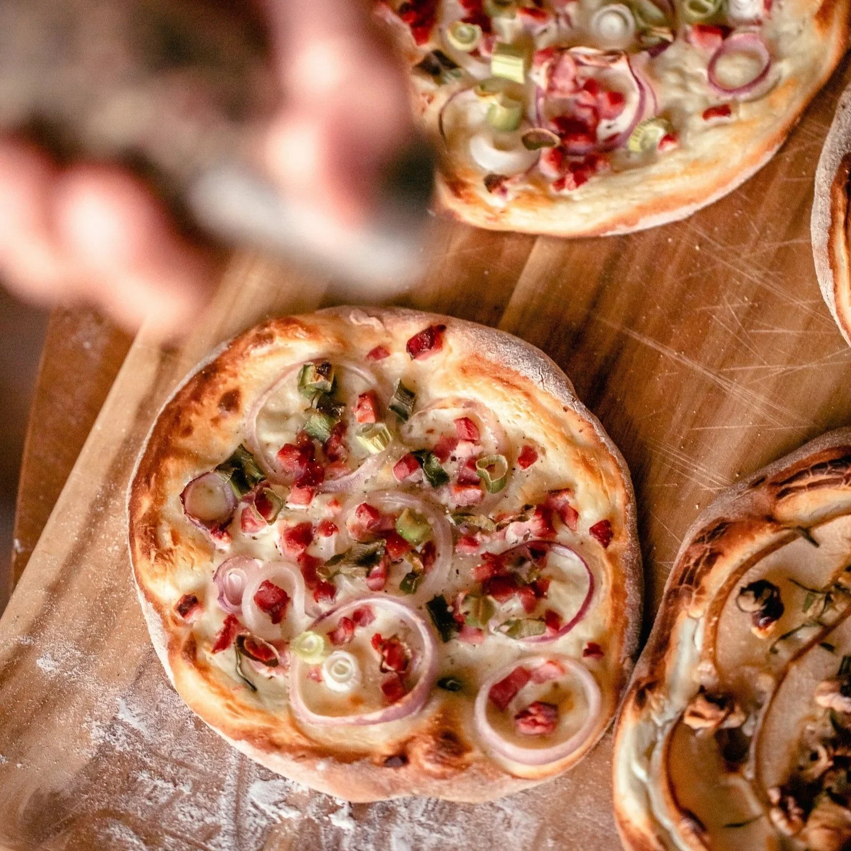 Im Café Steinchen geht es um Genuss und ein kleines Stück Auszeit vom Alltag. Bei uns findest du liebevoll gebackene Torten mit frischen Früchten, köstliche Kaffeespezialitäten und herzhafte Flammkuchen. Viele unserer Leckereien bereiten wir auch vegan, vegetarisch oder glutenfrei zu – damit jeder Platz an unserem Tisch findet. Ob drinnen im warmen Café oder draußen in unserem Obstgarten unter der Sonne, bei uns darfst du einfach ankommen und genießen.